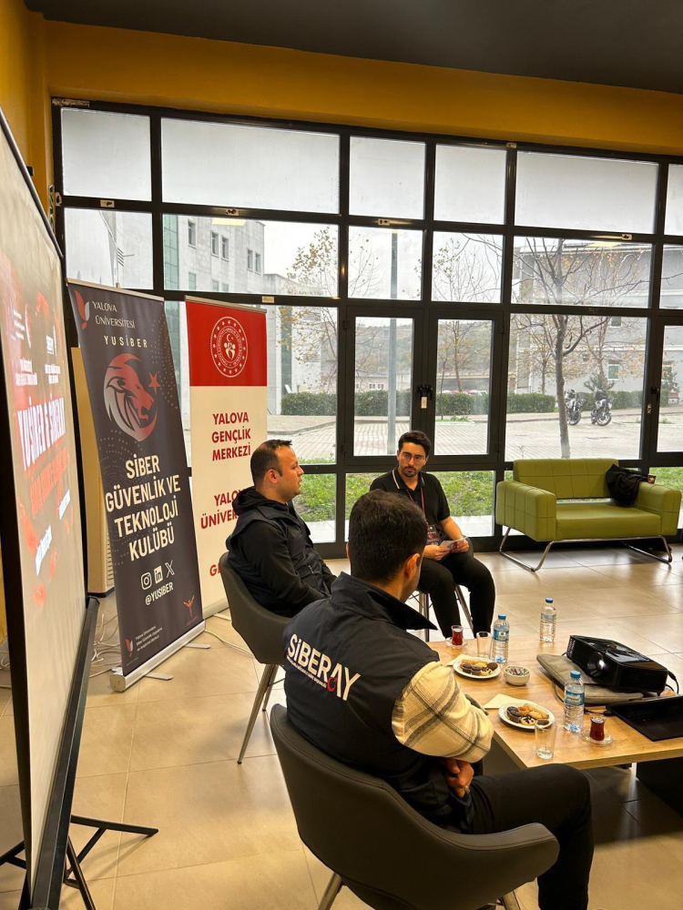 Yalova Emniyet Müdürlüğü Siber Suçlarla Mücadele Şubesi ekipleri, Yalova Üniversitesi Siber Güvenlik ve Teknoloji Kulübü öğrencileriyle bir araya geldi. Ekipler, gençlere sosyal medya kullanımı ve internet bağımlılığı konularında önemli uyarılarda bulunarak farkındalık eğitimi verdi.