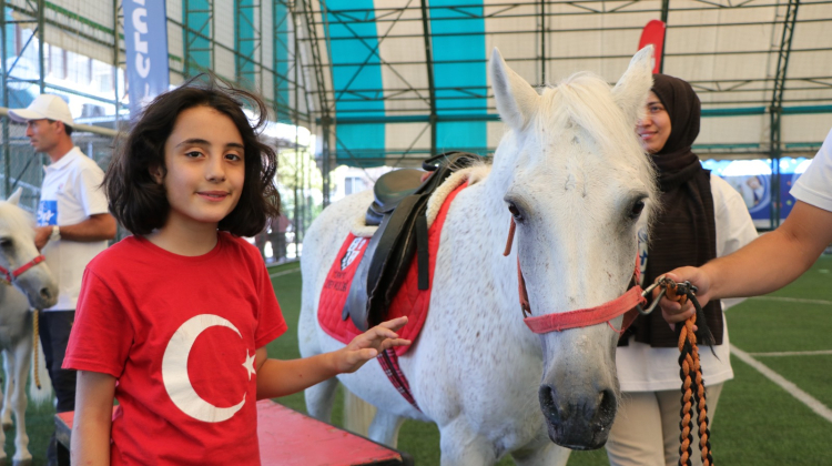 Çiftlikköy Belediye Spor Halı Saha Tesisleri’nde gerçekleştirilen etkinliğe aileleriyle birlikte katılan çocuklar, 13 yaşındaki Küçükbeyaz ve 19 yaşındaki Kartanesi ile keyifli anlar yaşadı. Kask ve korumalarını taktıktan sonra atlara binerek tesis içinde tur atan çocuklar, gezinti sonrasında hatıra fotoğrafı çekilmeyi de ihmal etmedi.