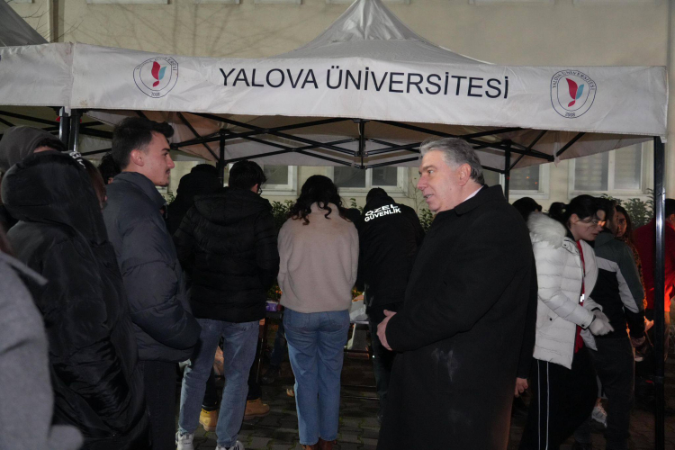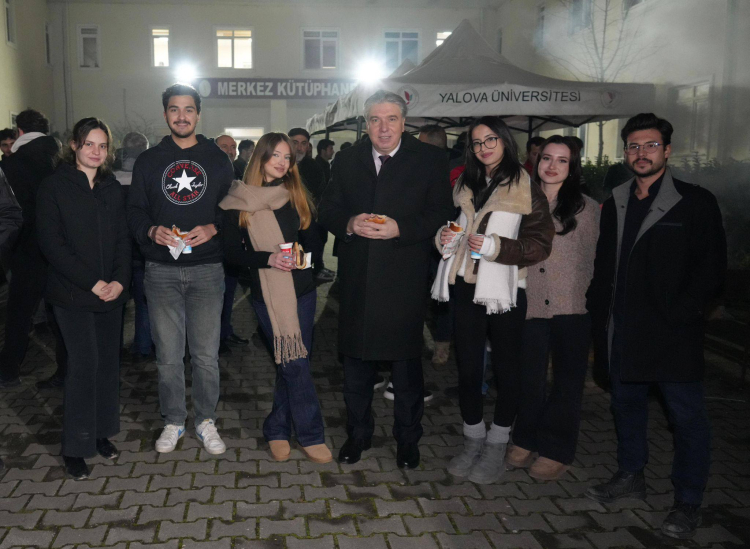 Yalova Üniversitesi ve Kızılay Yalova Şubesi, final haftasında sınava hazırlanan öğrencilere sucuk ekmek sürprizi yaptı. Yalova Üniversitesi Rektörü Prof. Dr. Mehmet Bahçekapılı tezgahın başına geçerek öğrencilere kendi elleriyle sucuk ekmek ikram etti.
