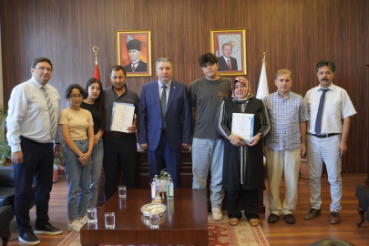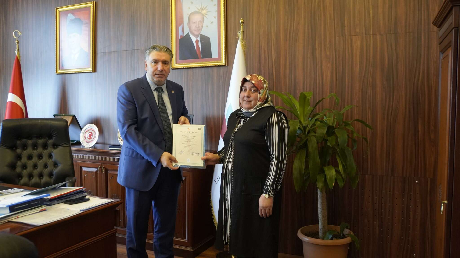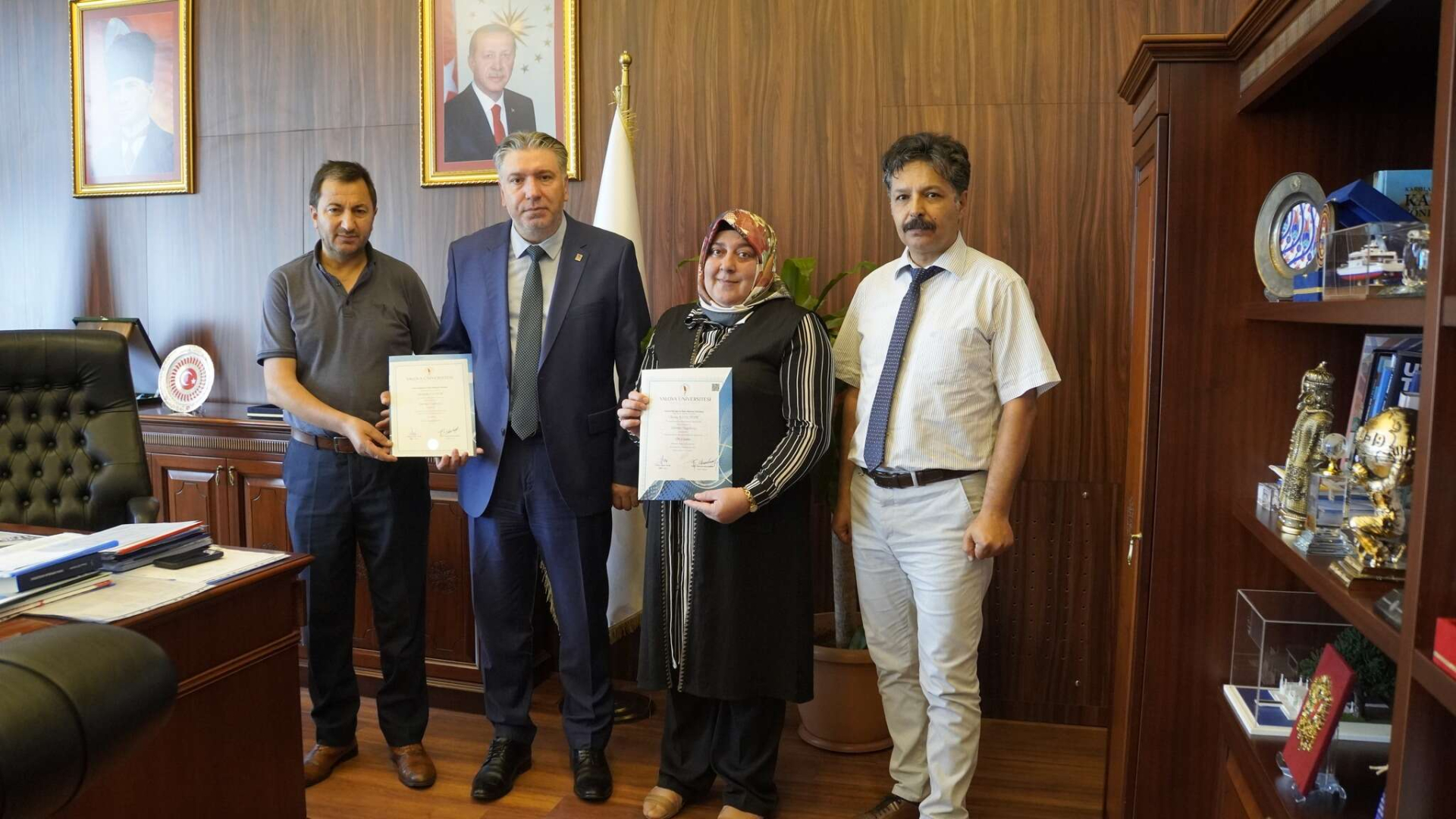 Rektör Bahçekapılı vefat eden öğrencinin ailesine diploma takdim etti