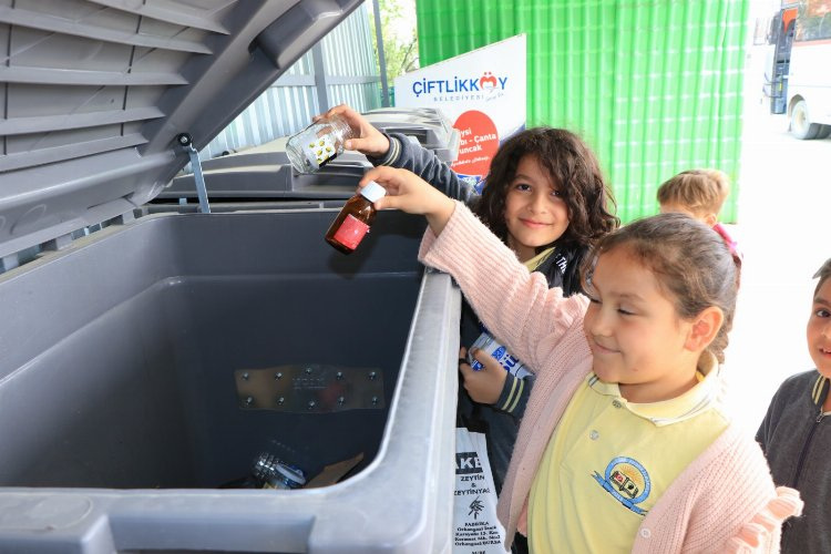 Çiftlikköy Belediyesi 1. Sınıf Atık Getirme Merkezi’ni ziyaret eden Ruhsar Aksoy İlkokulu’nun minik öğrencileri, geri dönüşüm süreçlerini ve organik toprak üretimini yerinde öğrendi
