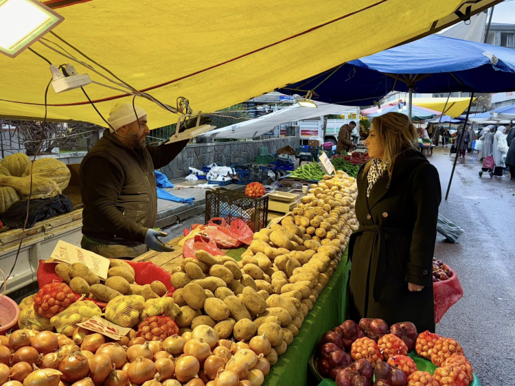 AK Parti Yalova İl Kadın Kolları Başkanı Selihan Dicle Şimşek, Bahçelievler Pazar Yerini ziyaret ederek esnafın sorunlarını dinledi. Soğuk havaya rağmen tezgâhının başında olan kadınlarla sohbet eden Şimşek, onların taleplerini not aldı.