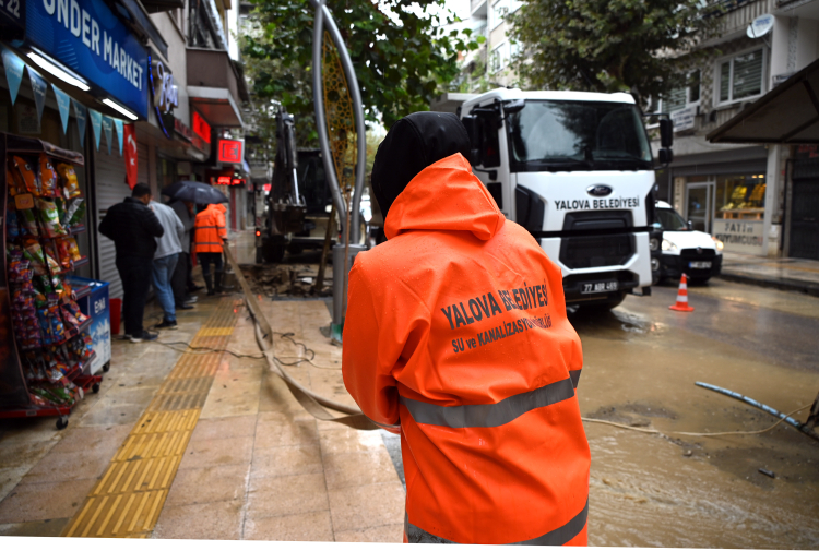Yalova Belediyesi Su ve Kanalizasyon Müdürlüğü ekipleri, etkili olan yağışların ardından kent genelinde oluşan sorunlara hızlı müdahale ederek vatandaşların günlük yaşamını kolaylaştırmaya devam ediyor. Ekipler, dört koldan çalışmalarını yürütüyor.