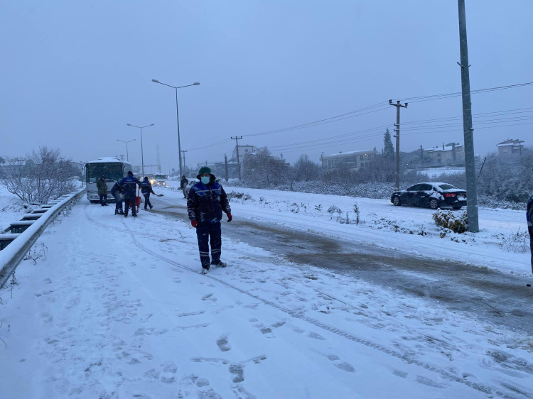 Kapanan yolları açmak için seferber olan Subaşı Belediyesi ekipleri, gece boyunca tuzlama çalışması yürüttü.