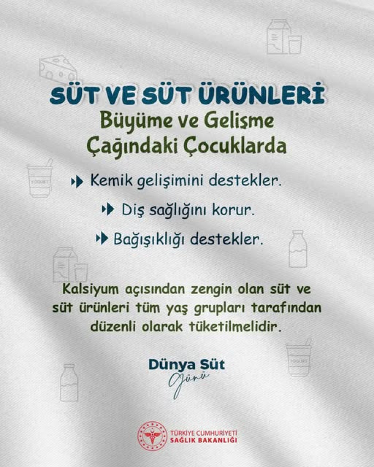 Yalova İl Sağlık Müdürlüğü tarafından paylaşılan mesajda, süt ve süt ürünlerinin kemik gelişimi, diş sağlığı ve bağışıklık sistemi üzerindeki olumlu etkileri vurgulandı. Özellikle büyüme çağındaki çocukların sağlıklı gelişimleri için kalsiyum açısından zengin olan bu ürünlerin düzenli tüketiminin elzem olduğu belirtildi.