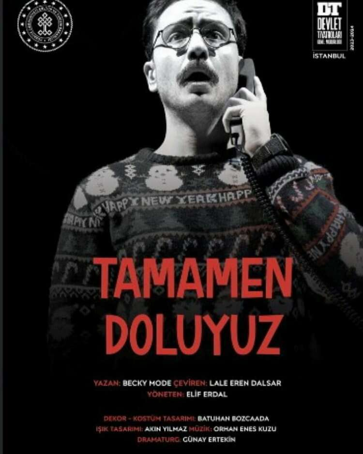 Devlet Tiyatroları Genel Müdürlüğü İstanbul Devlet Tiyatrosu oyunu olan ‘Tamamen Doluyuz’, 2 Nisan’da Raif Dinçkök Kültür Merkezi salonunda saat: 21.00’de sahnelenecek. Tamamen Doluyuz isimli Devlet Tiyatrosu oyununun bilet fiyatları yetişkinler için 45 TL, öğrenciler için 30 TL’den satılıyor. Oyunu seyretmek isteyen tiyatro severler Yalova İl Kültür ve Turizm Müdürlüğünden bilet alabiliyorlar. Amerikalı Oyun Yazarı Becky Mode tarafından yazılan ve Lale Eren Dalsar tarafından çeviren oyunun yönetmenliğini Elif Erdal yapıyor. Oyunun başkahramanı ‘Sam’ karakterini ise Efe Erkekli canlandırıyor.