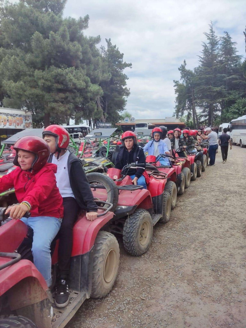 Yalova At Çiftliği’ne giden Arslan ve öğrenciler burada ata binerek farklı bir deneyim yaşadılar. Öğrencilerin birçoğunun atlarla ilk kez tanıştığı bu etkinlik, gençler için unutulmaz bir deneyim oldu. Ardından ATV gezisi gerçekleştirildi. Bindikleri ATV’lerle off road yapan öğrenciler doyasıya eğlendi.