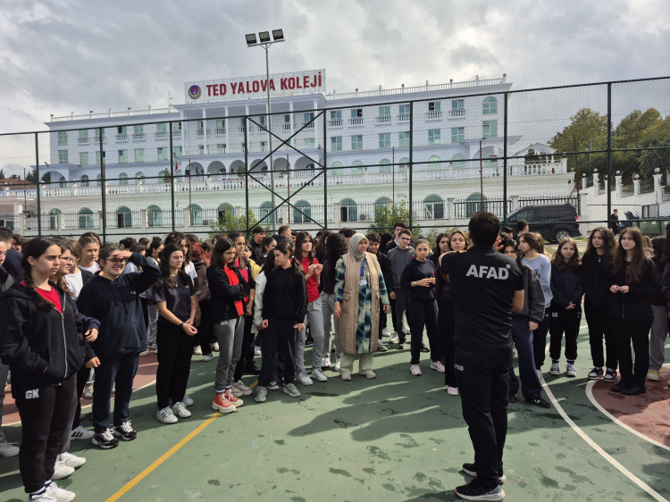 Bu kapsamda TED Yalova Koleji’nde anaokulundan liseye kadar tüm kademelerde Afet Farkındalık Eğitimi ve Toplu Tahliye Tatbikatı gerçekleştirildi. AFAD ekiplerinin desteğiyle düzenlenen etkinlikte, öğrenciler ve öğretmenler afet anında nasıl hareket edilmesi gerektiğini uygulamalı olarak öğrendi. Tatbikat sırasında tahliye prosedürleri, güvenli toplanma alanları ve acil durum refleksleri üzerinde duruldu. Etkinlik kapsamında okul bünyesinde kurulan Afet ve İlk Yardım Ekibi de öğrencilere tanıtıldı. Bu ekip, olası afet durumlarında müdahale kapasitesini artırmayı ve öğrencilerde toplumsal bilinç oluşturmayı hedefliyor.