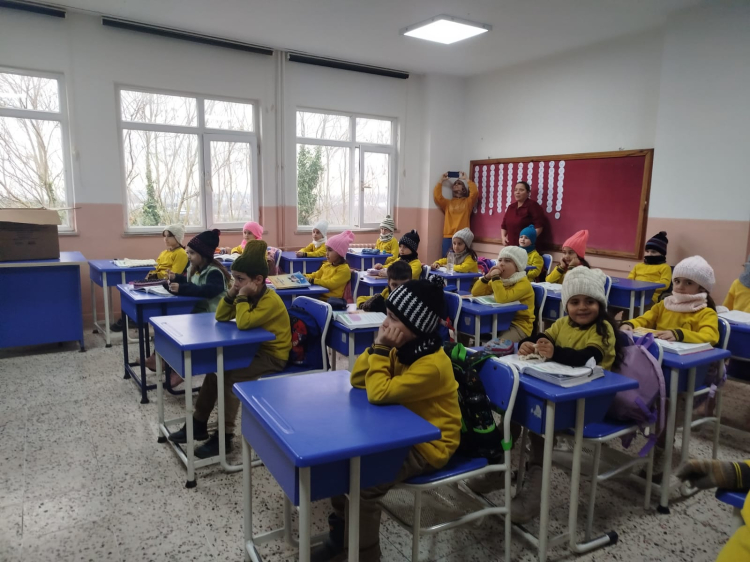Türkiye Emekli Astsubaylar Derneği (TEMAD) Yalova İl Başkanlığı, ilkokul öğrencilere karne hediyesi olarak atkı ve bere dağıttı.