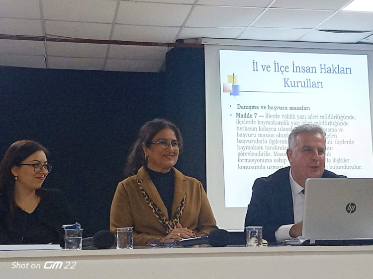Doğan Çay, İl İnsan Hakları Kurulu’nun tanımı, amacı ve yürüttüğü faaliyetler hakkında teknik bilgiler aktarırken, Avukat Kotan genel insan hakları çerçevesinde hukuki bilgilendirmelerde bulundu. Söyleşi neticesinde, İl İnsan Hakları Kurulu’nun köy, mahalle ve sivil toplum kuruluşlarında tanıtımının yapılmasının önemi üzerinde duruldu.