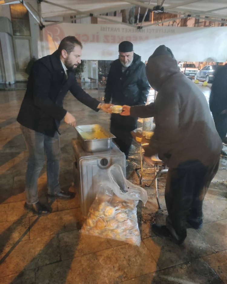 MHP Yalova Merkez İlçe Başkanı Fatih İkinci’nin öncülüğünde, Yalova Ülkü Ocakları Başkanı Furkan Beydilli ve Merkez İlçe Yönetimi, sabah namazı sonrası Yalova Merkez Camii’nde çorba ikramı gerçekleştirdi.