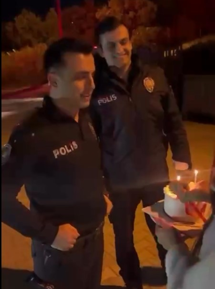 Polis memurları için pasta hazırlayan ve üzerine “Kahraman Polislerimiz İyi ki varsınız” yazan öğrenciler anlamlı bir sürpriz gerçekleştirdi. Pastalı sürprizi gören polis memuru hem şaşkınlık hem de sevinci bir arada yaşadı. Geceye renk katan bu anlamlı jest, polislerin yüzünde tebessüm oluştururken, birlik ve dayanışmanın en güzel örneklerinden biri olarak hafızalarda yer etti.