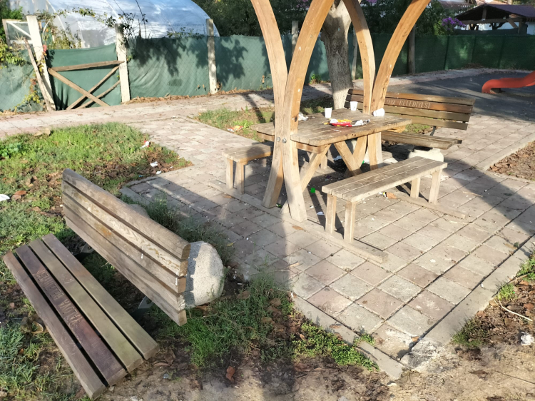 Yalova İsmetpaşa Mahallesi Tınaztepe Sokak’ta bulunan oturma bankı, kimliği belirsiz kişiler tarafından devrilerek tahrip edildi. Ayrıca çöp ve atıklarla park kirletildi.