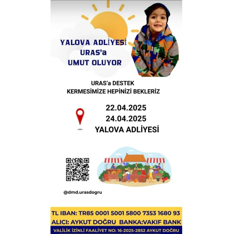 Kampanyaya bir destek de Yalova Adliyesi’nden geldi. Yalova Adliyesi minik Uras’a umut olmak için harekete geçti. Yalova Adliyesi’nde Umut’un tedavisinde kullanılmak üzere yardım toplamak amacıyla kermes düzenledi. 22 Nisan Salı günü başlayan kermes 24 Nisan Perşembe gününe kadar devam edecek. Son olarak yapılan çağrıda “Yalova Adliyesi’nde kurulacak olan kermeste, Uras’a destek olmak için bir araya geliyoruz. Siz de bu anlamlı dayanışmaya katkı sunmak isterseniz, kermese bekliyoruz” denildi.