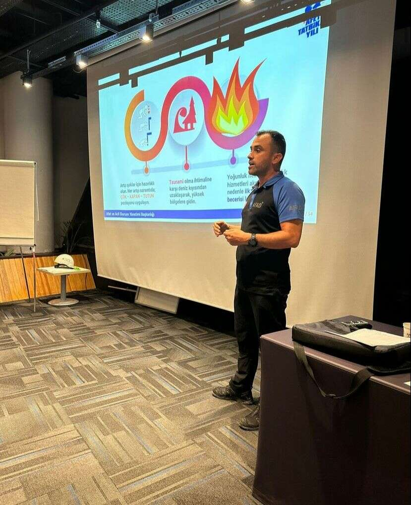 AFAD Yalova İl Müdürlüğü gerçekleştirilen sunumdan sonra Karmarine Tersanesi çalışanlarına vermiş olduğu farkındalık eğitimine katılımları için teşekkür ederek afetsiz günler diledi.