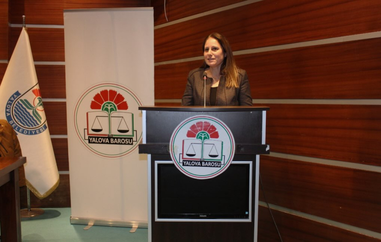 Yalova Raif Dinçkök Kültür Merkezi’nde gerçekleştirilen seminere, Avukat Yankı Büyüksezer konuşmacı olarak katıldı.