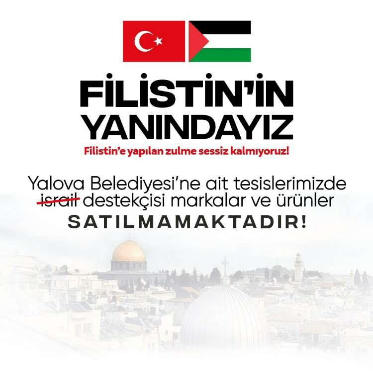 Ülke genelinde yapılan boykota, “Yalova Belediyesi’ne ait tesislerimizde İsrail destekçisi markalar ve ürünler satılmamaktadır” mesajı ile destek verdiğini belirten Başkan Tutuk, milli birlik bilinciyle İsrail marka ürünleri satın almayarak zulümlere karşı olduğunu dile getirdi. Tutuk, “Filistin’e yapılan zulme sessiz kalmıyoruz” diyerek halkı da bilinçli olmaya davet etti.