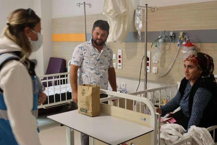 Yalova Belediyesi Kadın ve Aile Hizmetleri Müdürlüğü personelleri, Yalova Eğitim ve Araştırma Hastanesi’nde tedavileri devam eden hastaları ziyaret etti.