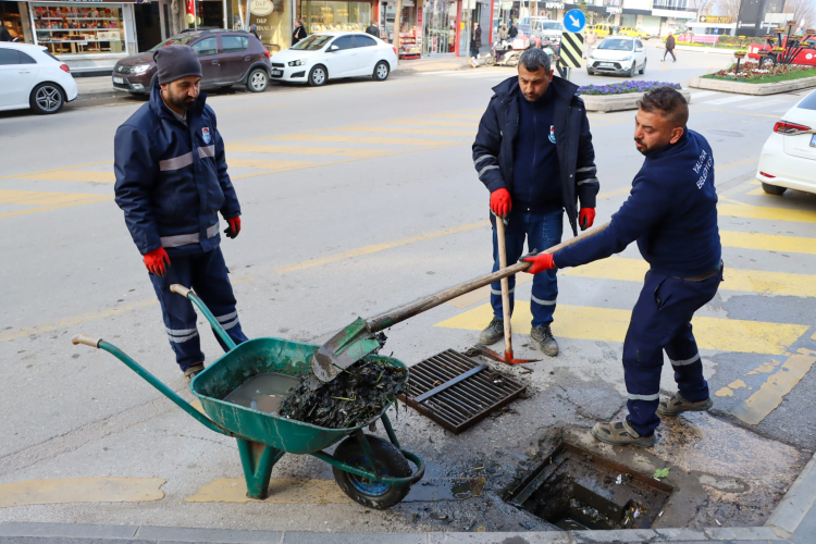Olası su taşkınlarını önlemek amacıyla mazgallarda biriken yaprak, çöp ve diğer atıkları temizleyen ekipler, yağışların oluşturabileceği olumsuzlukları en aza indirmeyi hedefliyor.