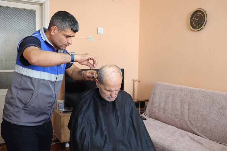 Belediye ekipleri, kent genelinde belirlenen yaşlı, engelli ve yatağa bağımlı bireylerin evlerine giderek saç kesimi ihtiyaçlarını karşılıyor.