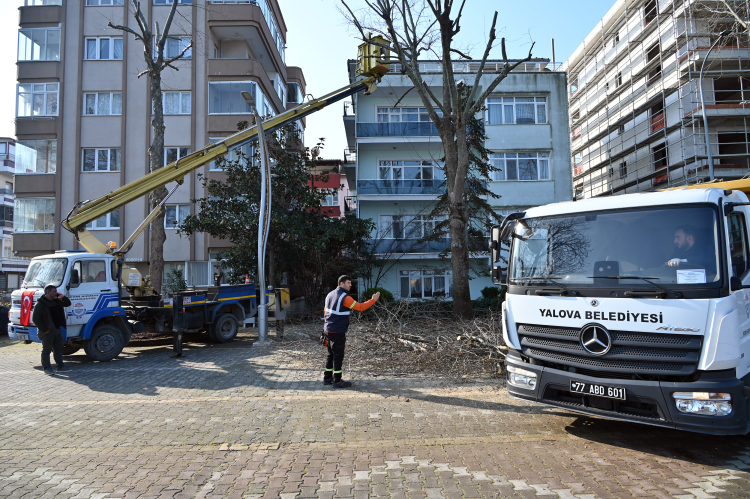 Yalova Belediyesi’nden Gazipaşa Caddesi’nde ağaç budama ve bakım çalışması
