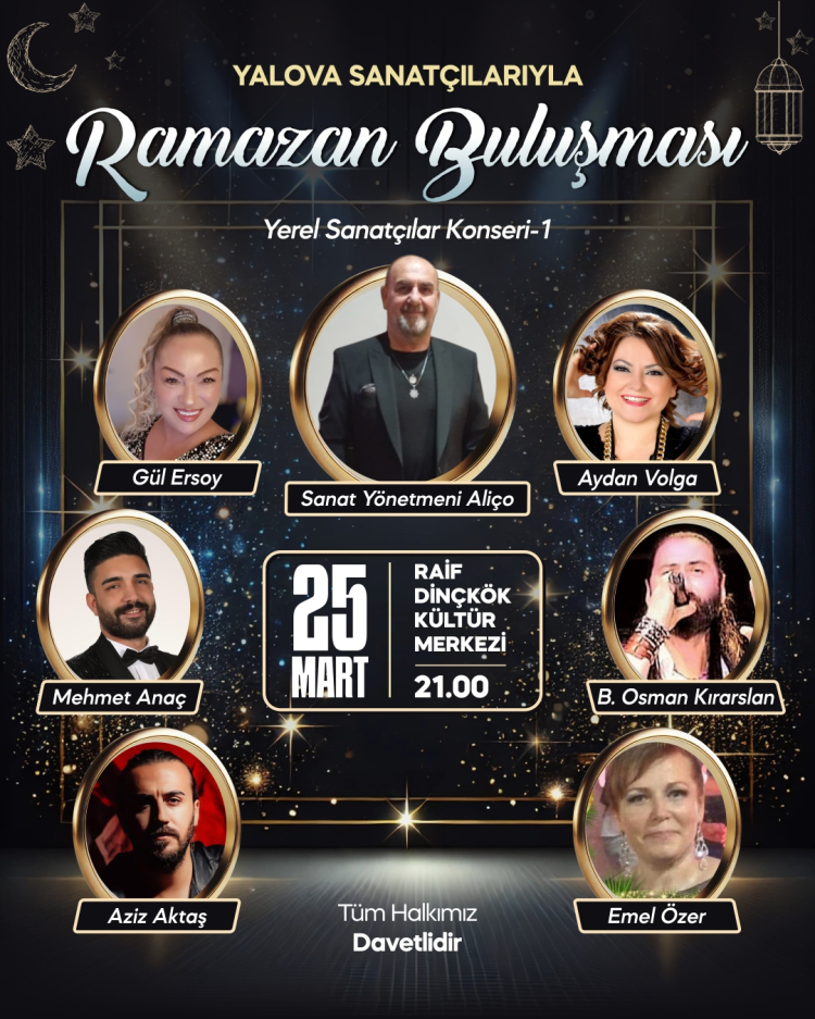 Yalova Belediyesi, ramazan ayının manevi atmosferini sanatla taçlandırıyor. ‘Yalova Sanatçılarıyla Ramazan Buluşması’ etkinliği kapsamında, 25 Mart Salı akşamı yerel sanatçılar müzikseverlerle buluşacak.