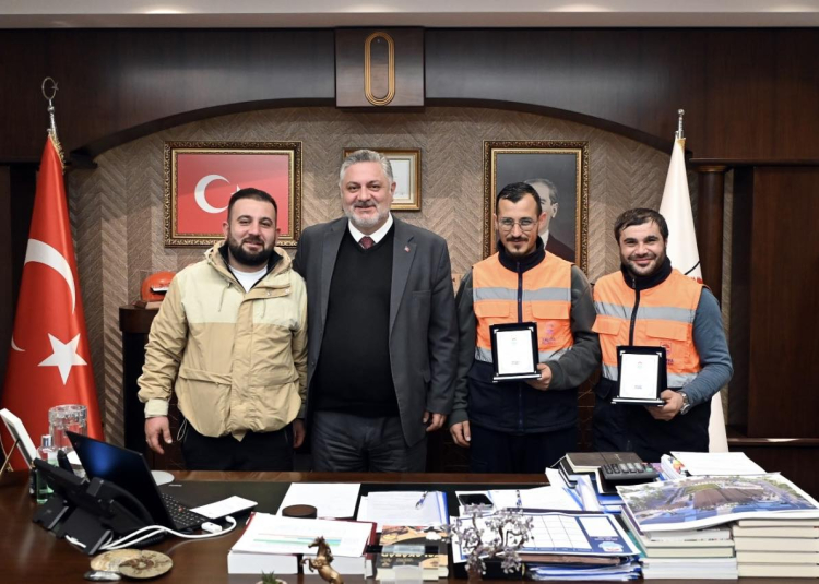 Yalova Belediye Başkanı Mehmet Gürel, gece saatlerinde görevi başında özveriyle çalışan Burak Özgeriş ve Hasan Koç’a, görev anlayışları ve vatandaşlardan gelen olumlu geri dönüşler nedeniyle kendilerine özel olarak hazırlanan başarı plaketlerini takdim etti.