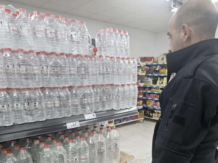 Yalova Belediyesi Zabıta Müdürlüğü ekipleri, kentte yaşanan su kesintisini fırsat bilerek fiyat artışına giden marketleri sıkı mercek altına aldı.