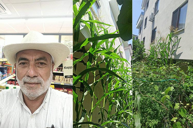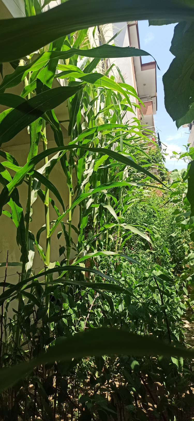 Apartmanın 2. katına kadar ulaşan mısır bitkisi bu kadar kısa süre içerisinde yaklaşık 5 metre uzunluğa ulaşan türünün nadir örneklerden biri olarak gören herkesi hayrete düşürüyor.