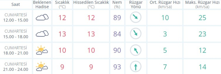 Ortalama rüzgar hızı ise 3 km/saat ile maksimum ise 25 km/saat arasında seyretmesi bekleniyor.