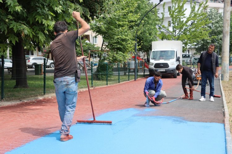 Yalova’da bisiklet ve yürüyüş yolunda boyama çalışmaları devam ediyor
