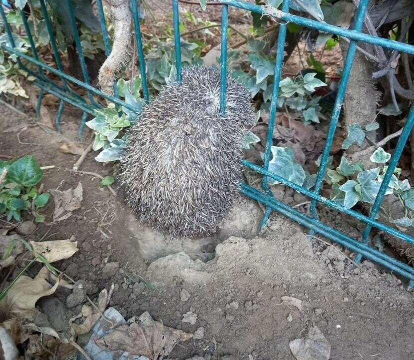 Yalova İlinde bir kirpi demir çitlerin arasından geçmeye çalışırken sıkıştı ve hareketsiz kaldı.