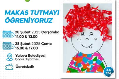 Atölye, 26 Şubat 2025 Çarşamba günü saat 11.00 ve 13.00’te, 28 Şubat 2025 Cuma günü ise saat 15.00 ve 17.00’de gerçekleştirilecek. Etkinlik, Yalova Belediyesi Çocuk Tiyatrosu’nda düzenlenecek ve tamamen ücretsiz olacak. Çocuklar, eğlenceli kesme ve yapıştırma aktiviteleriyle makas kullanmayı öğrenirken, aynı zamanda sanatsal yönlerini geliştirme fırsatı bulacaklar.