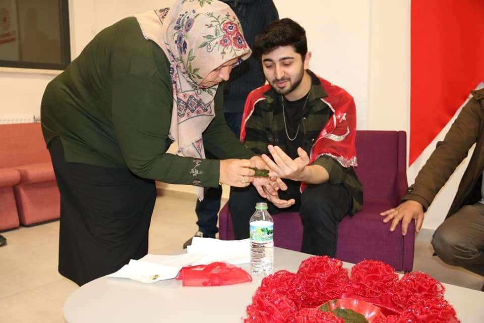 Kahramanmaraş’ta meydana gelen depremde evleri yıkılan ve Yalova’ya getirilen depremzede ailelerden birinin oğlu, KYK Yurdu’nda düzenlenen bir programla askere uğurlandı. Gencin annesi tarafından eline kına yakıldı. Programda duygusal anlar yaşandı