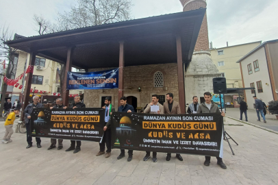 Dünya Kudüs Günü nedeniyle Yalova Merkez Cami önünde Cuma Namazının ardından basın açıklaması gerçekleştirildi.