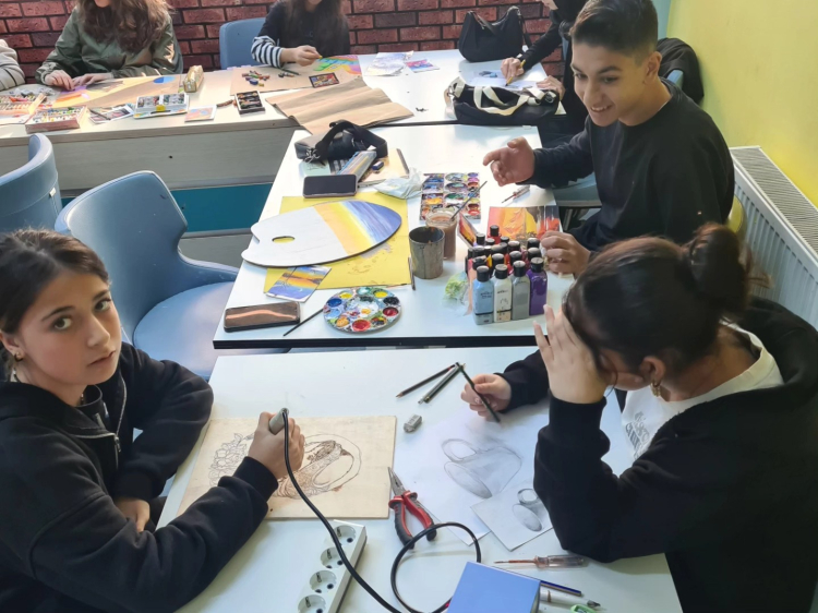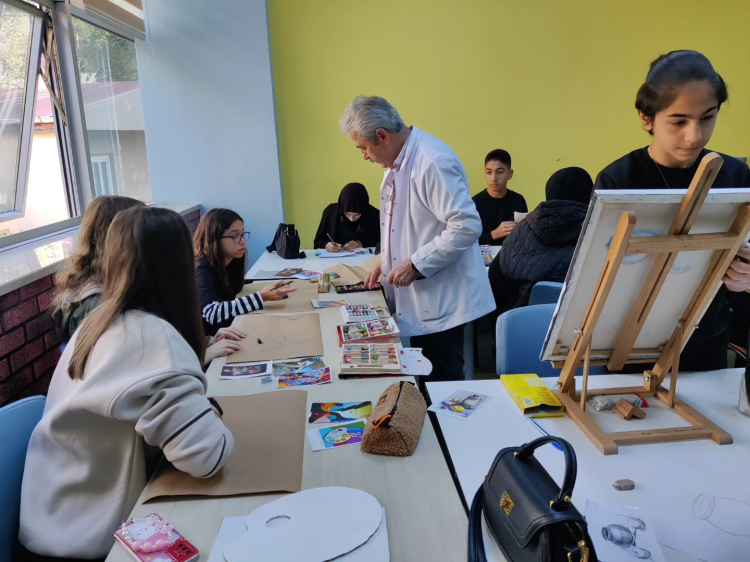 Sanatla iç içe bir ortamda resim yapma fırsatı bulan gençler, hem hobilerini geliştiriyor hem de yaratıcılıklarını ortaya koyuyor.