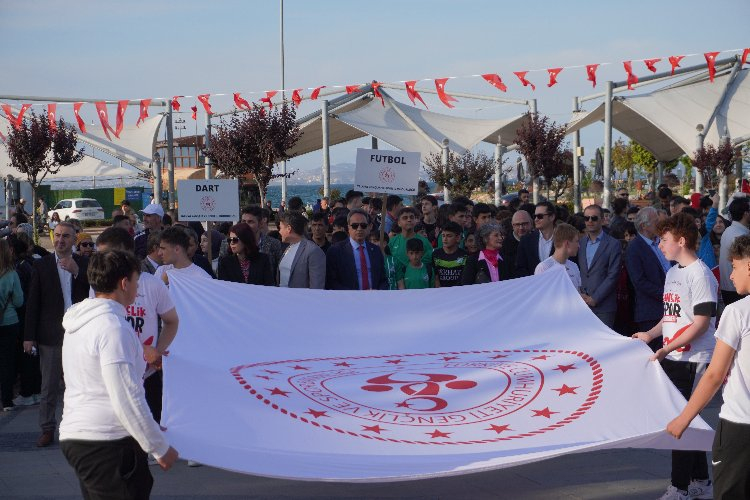 Gençlik Marşı eşliğinde Yalova’nın farklı spor branşlarından genç sporcular ve çok sayıda vatandaşın katılım sağladığı yürüyüşe, Yalovalılar da balkonlarından alkışları ile destek verdi.