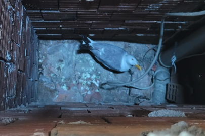 Yalova’da havalandırma boşluğuna düşen martıyı kurtardılar