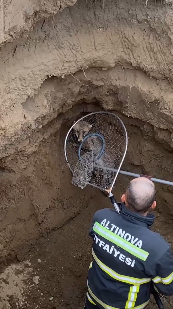 Yalova’nın Altınova İlçesinde, kepçe tarafından kazılmış bir çukurun içerisine düşen tilki düştüğü yerden çıkamayarak mahsur kaldı. Tilkinin çukura düşerek mahsur kaldığını gören vatandaşlar, itfaiyeye ihbarda bulundu.