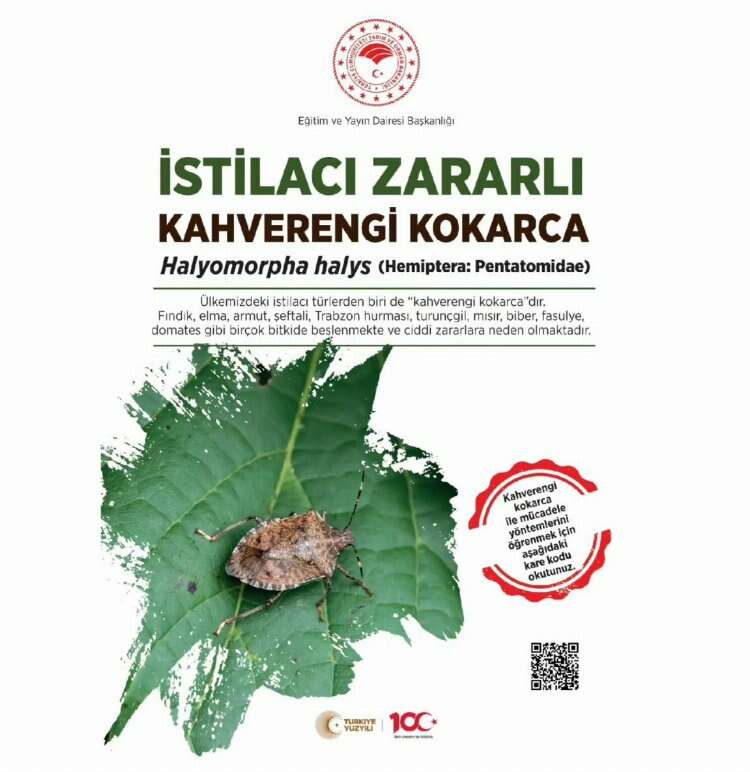 Yalova İl Tarım ve Orman Müdürlüğü, vatandaşları ‘Kahverengi Kokarca’ olarak da bilinen Halyomorpha halys tarım zararlısına karşı uyarmayı sürdürüyor.
