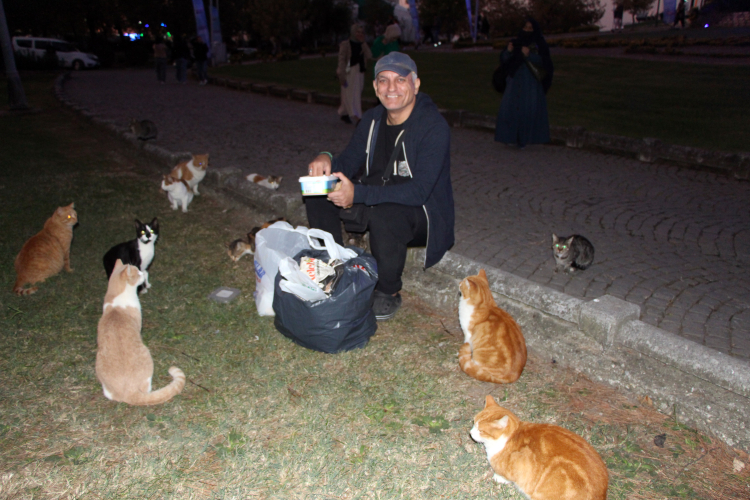 Çınarcık ilçesinde yaşayan Cem Güvener, aylardır hafta üç gün boyunca Yalova’ya gelerek Barış Manço Açıkhava Tiyatrosu önündeki parktaki sokak kedilerini besliyor. Hayvanseverliğiyle tanınan Güvener, kedilerin kendisini tanıyıp yanına koşmalarından büyük mutluluk duyduğunu ifade etti. Güvener, “Hayvanlar her geçen gün yiyecek ve su bulmakta daha zorlanıyorlar. Buradaki kediler de yiyecek bulamıyorlar. Bunu fark edince onları beslemek istedim. Bu, zamanla bir rutine dönüştü ve aylardır haftanın üç günü Çınarcık’tan kalkıp Yalova’ya gelerek kedileri doyuruyorum,” dedi.