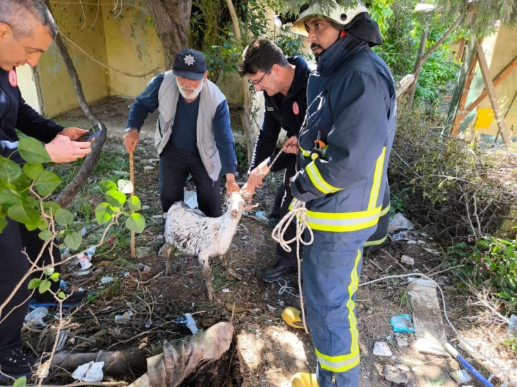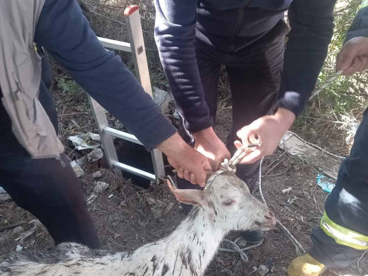 İhbar üzerine olay yerine gelen Yalova Belediyesi İtfaiye Müdürlüğü ekipleri, keçiyi düştüğü logar kuyusundan kurtarmak için seferber oldu.
