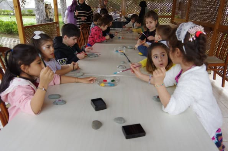 Doğal taşların dokusu ve renkleriyle etkileşim kuran minikler, doğanın sunduğu zenginlikleri keşfetme fırsatı buldu.