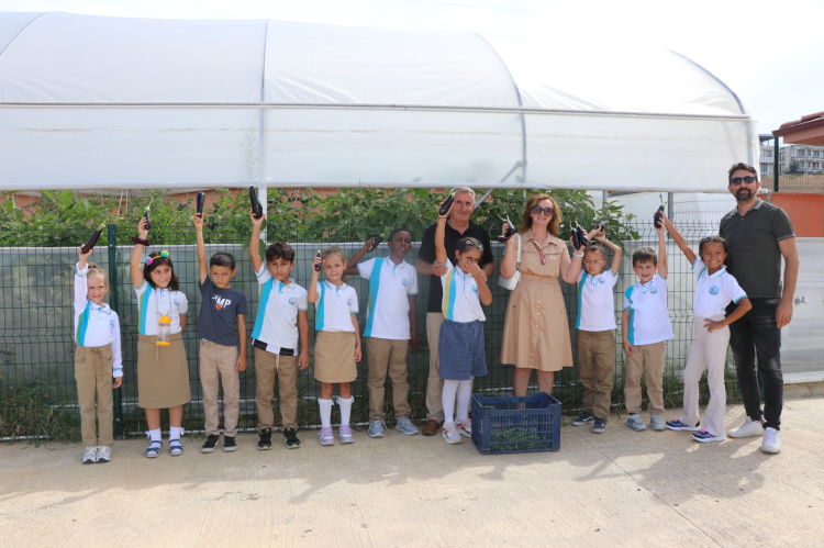 Yalova İlkokulu'nun Okuldaki Çiftlik Projesi kapsamında serada yetiştirilen sebzeler, öğrenciler tarafından hasat edildi. Proje, tarım ve doğa bilincini artırmak amacıyla devam ediyor