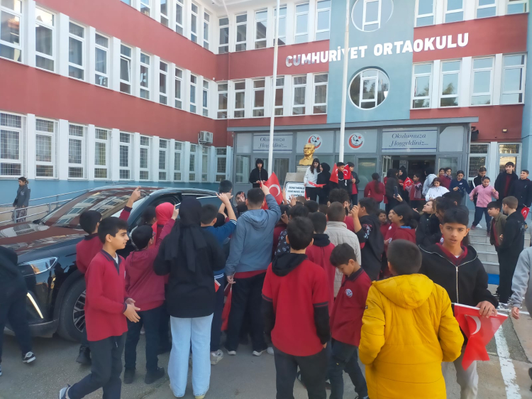 Cumhuriyet İlkokulu’nda Yerli Malı Haftası kapsamında düzenlenen etkinlikte, Türkiye’nin ilk yerli ve milli otomobili olan Togg, Yalova Ticaret ve Sanayi Odası (YTSO) desteğiyle öğrencilerle buluştu. Milli üretime vurgu yapmak amacıyla okul bahçesine getirilen Togg, öğrenciler tarafından büyük bir heyecanla karşılandı.