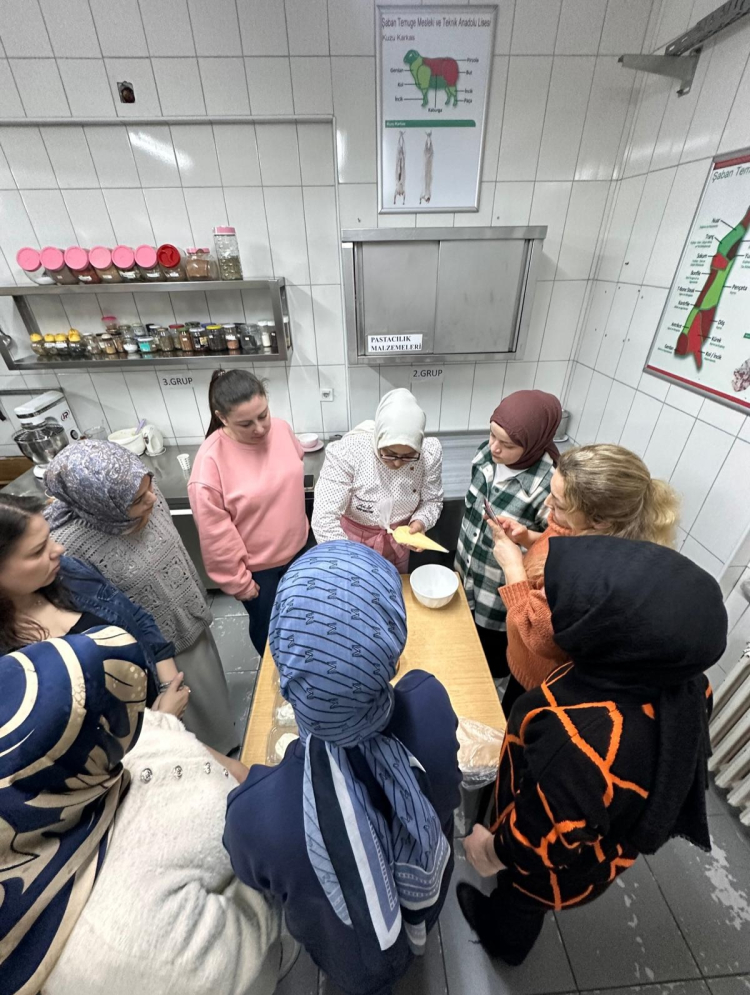 Şaban Temüge Mesleki ve Teknik Anadolu Lisesi (MTAL) mutfağında düzenlenen Pastacılık Kursu, renkli görüntülere sahne oldu.