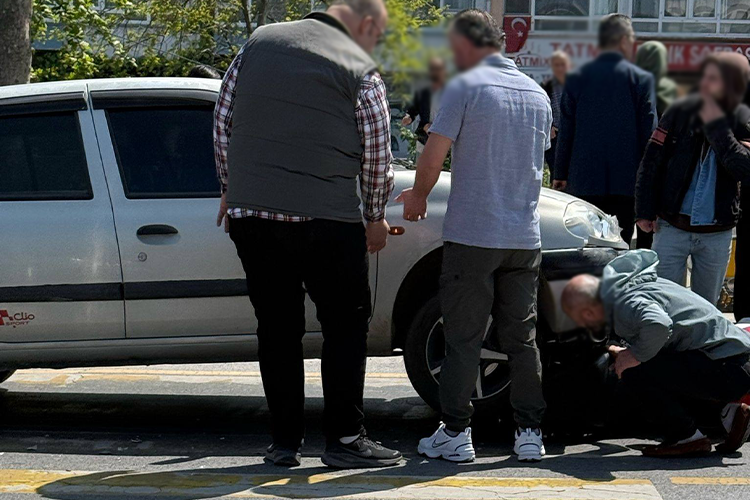 OTOMOBİLİN ALTINDA SIKIŞTI