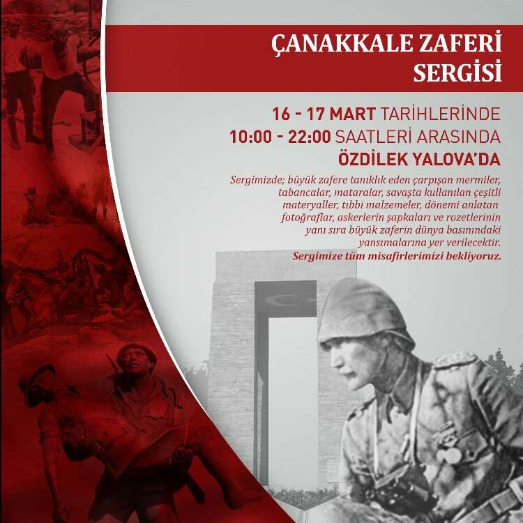 Büyük zafere tanıklık eden eserlerin yer aldığı Çanakkale Zaferi Sergisi, 16-17 Mart 2024 tarihlerinde Özdilek Yalova’da ziyarete açık olacak.