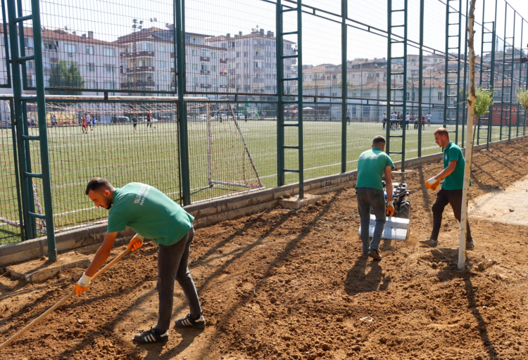 Park ve Bahçeler Birimi ekipleri tarafından yapılan tesviye çalışmalarında park içinde ve çevresinde bulunan yeşil alanlarda bulunan toprakların temizliği, sürülmesi yapılırken eksik olan yerlere ise toprak dökülüyor.