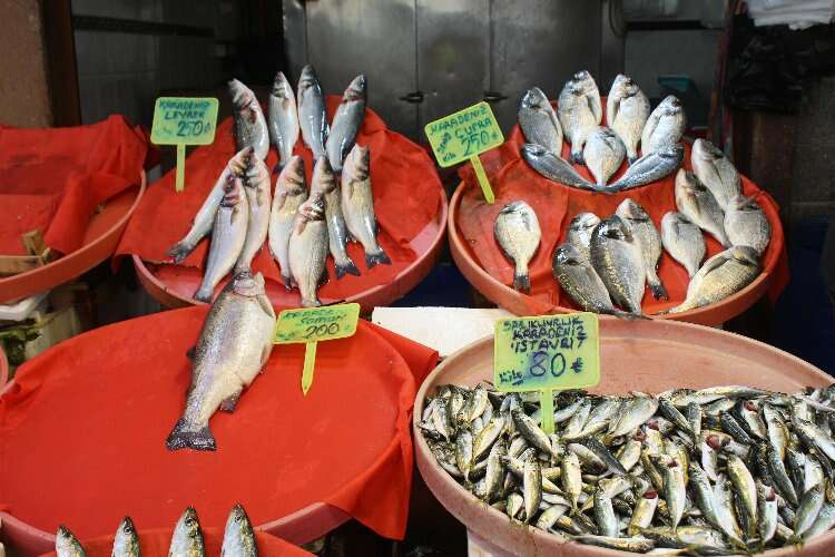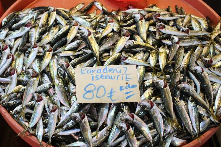 Hamsi 130 TL, istavrit 80 TL, sardalye 80 TL, çipura 250 TL, palamut 150 TL, alabalık 180 TL, levrek 250 TL, yerli somon 200 TL, tekir 180 TL, ithal uskumru tane 65 TL, mezgit 150 TL, alabalık 180 TL, iri turna mezgit 300 TL.